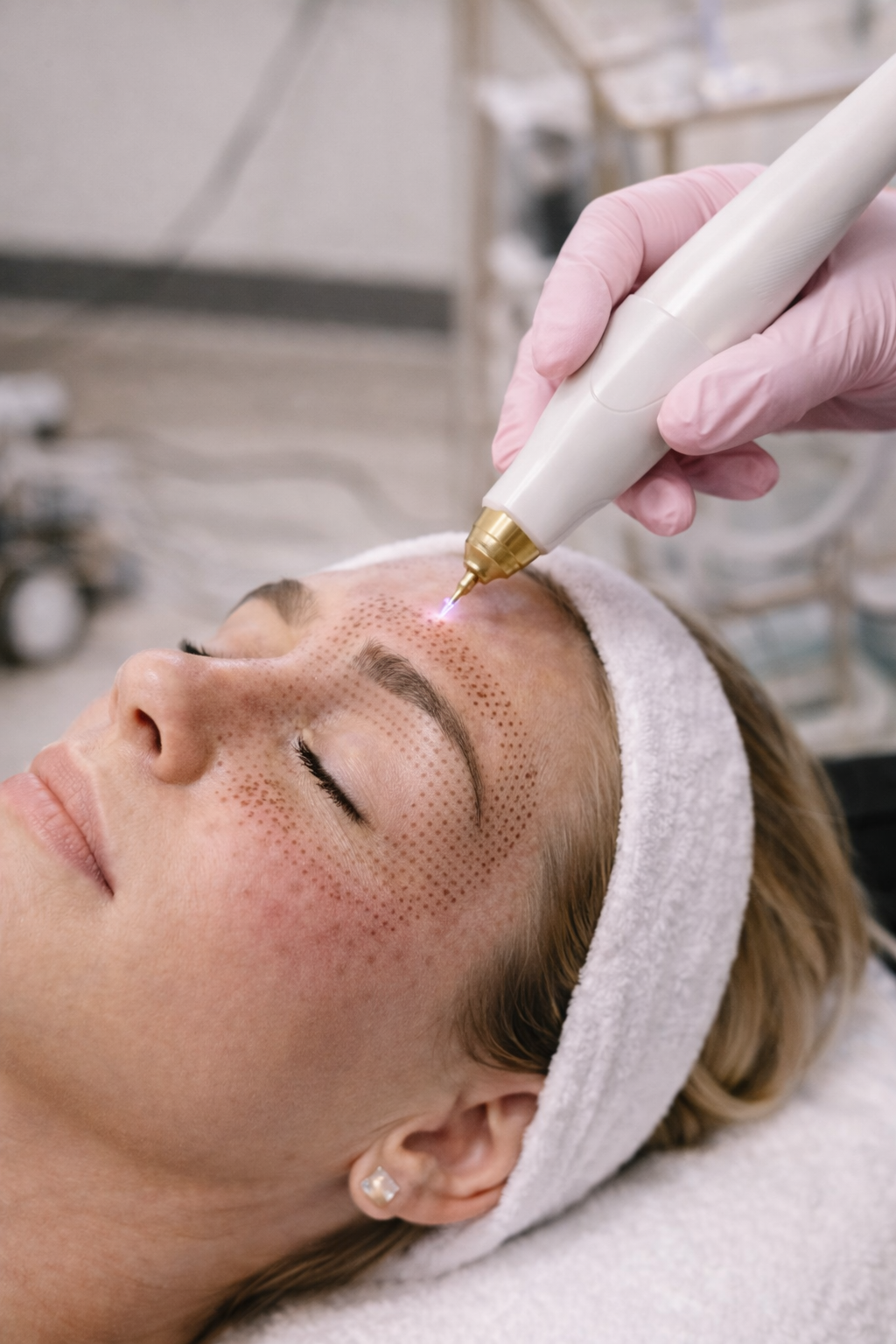A targeted plasma treatment that contracts excess skin and stimulates collagen production in selected areas. Requires appropriate candidate selection and strict aftercare.