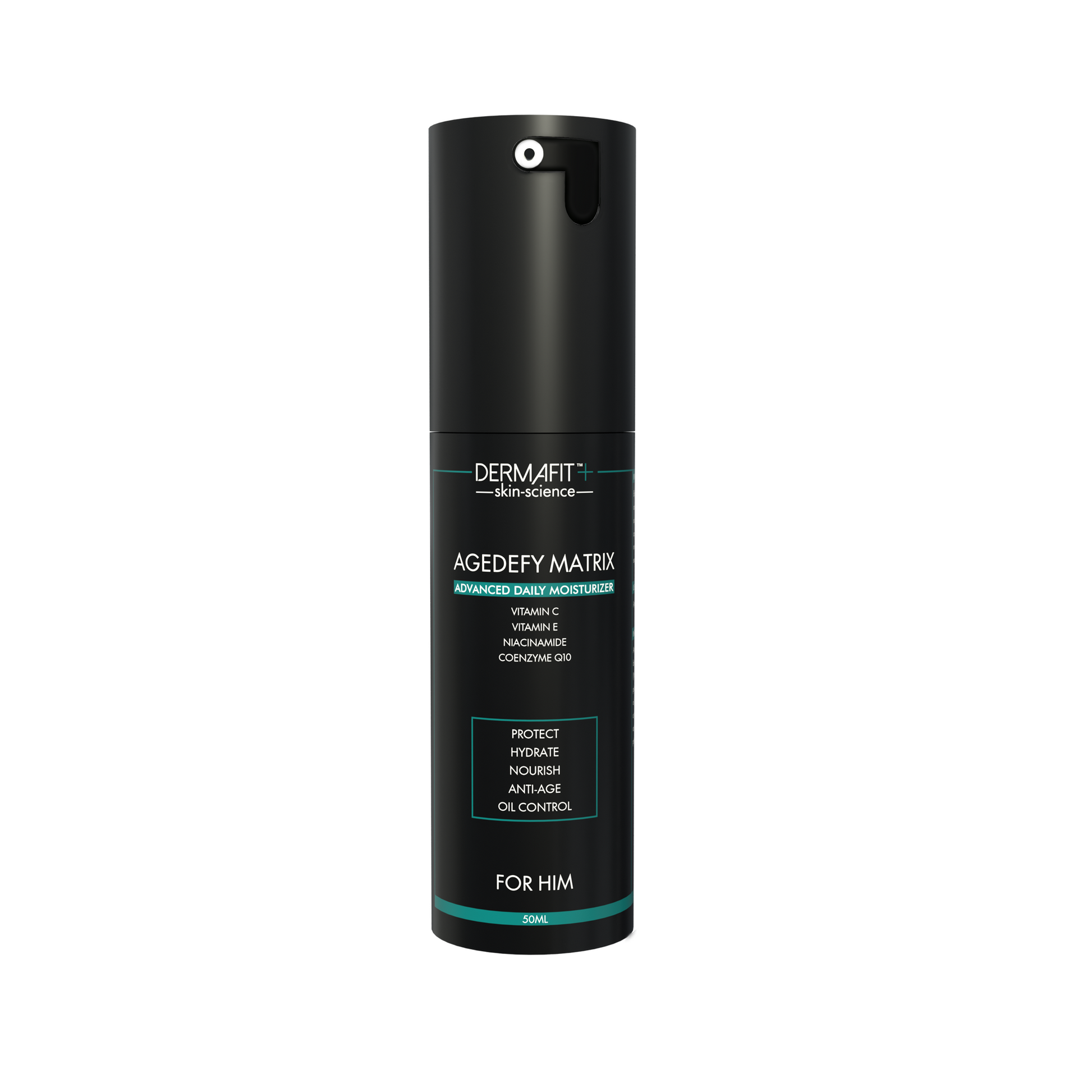 AgeDefy Matrix is a high-performance, clinically engineered moisturizer created for men’s skin structure and demands. Powered by Coenzyme Q10, Niacinamide, Vitamin C (SAP), and Hemisqualane, this antioxidant-rich formula restores hydration, defends against daily oxidative stress, and supports skin resilience—all without heaviness or shine. It’s strength, recovery, and smart skincare in one streamlined formula.
