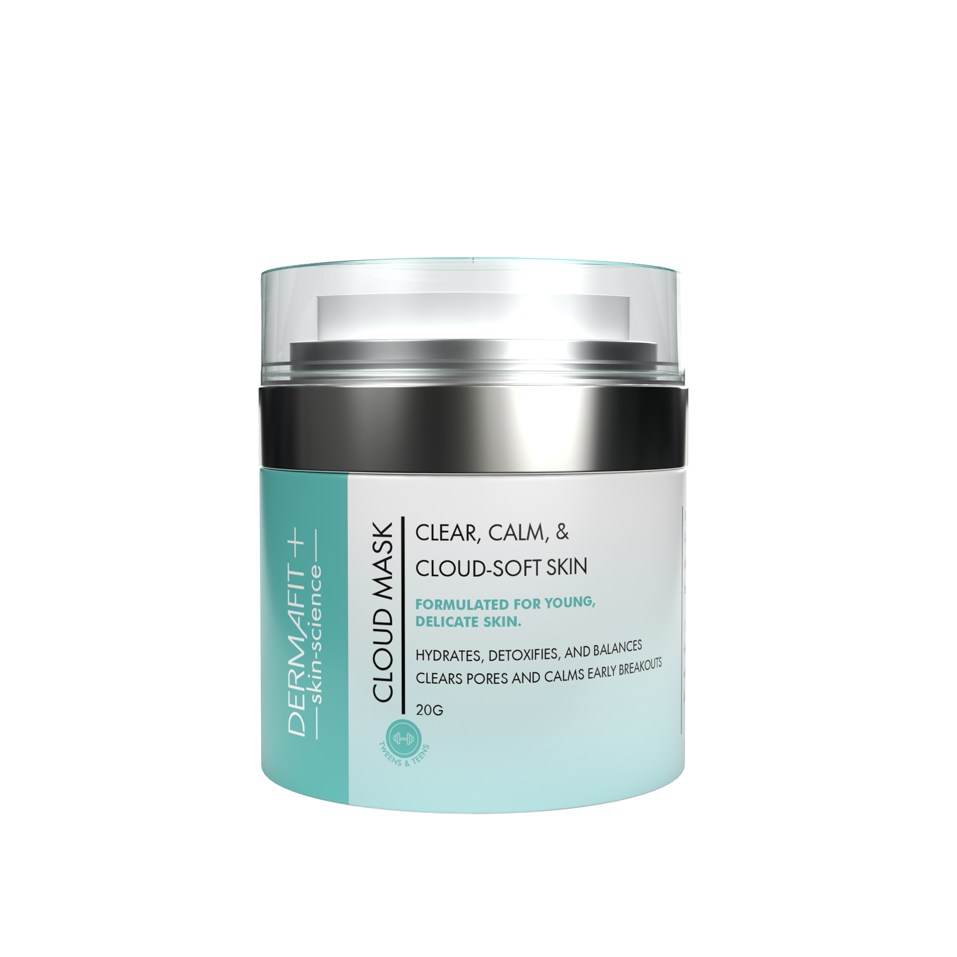 The perfect first clay mask for little skin. Cloud Mask is a gentle, beginner-friendly treatment designed especially for kids, tweens, and teens with delicate or sensitive skin. This soothing clay blend (with Kaolin & Bentonite) helps draw out impurities, balance excess oil, and prevent early congestion, while still being soft and non-drying for young skin. Enriched with Aloe Vera, Hyaluronic Acid, Niacinamide, Rice Bran Oil, and Vitamin C, it hydrates, calms, and supports a healthy glow.