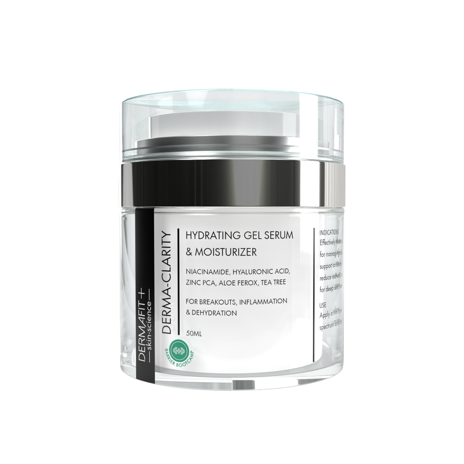 Infused with Niacinamide, Zinc PCA, and (Tea Tree) Oil, DermaClarity helps reduce sebum production, calm inflammation, and prevent the proliferation of acne-causing bacteria. Aloe Ferox, indigenous to Southern Africa, delivers powerful antioxidant and soothing properties & long-lasting hydration.